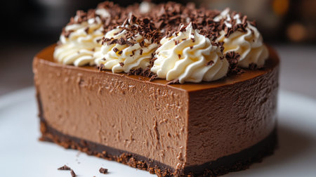 Decadent chocolate dessert with creamy filling and chocolate topping