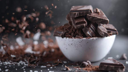 Dark chocolate cracked pieces closeup macro