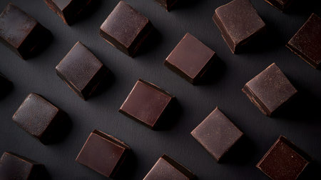 An array of delicious dark chocolate cubes arranged neatly on a dark background, perfect for gourmet dessert visuals.