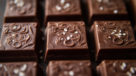 Indulge in these exquisite dark chocolate squares, adorned with detailed designs and a touch of sea salt, ideal for enhancing any dessert display or culinary creation.