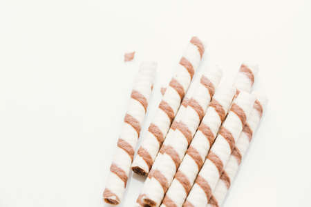 top view of wafer roll chocolate on white background