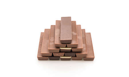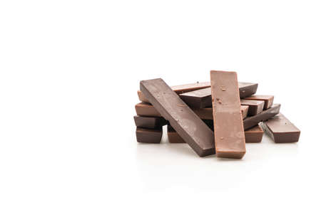 Brown and white filled chocolate sticks on a pile isolated over white