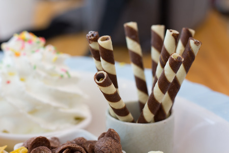 Wafer roll sticks cream rolls in a cup