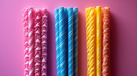 Striped straw-shaped cookies close-up in detail