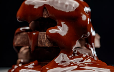 Luxurious melted chocolate with sparkling highlights. Generative AI