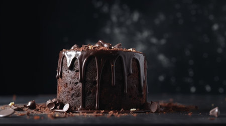 AI Generated. Delicious Melted Chocolate Dripping Down Dark Background Sweet Indulgence
