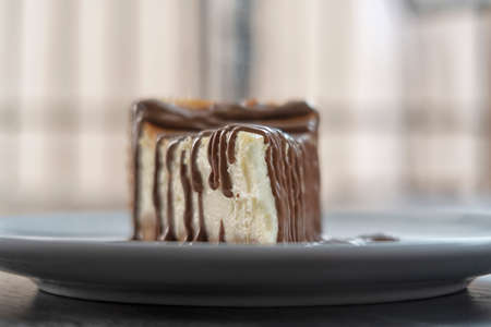 Sweet dessert on light colored background. Cake with chocolate. AI illustration.