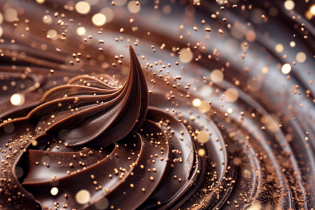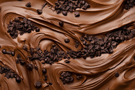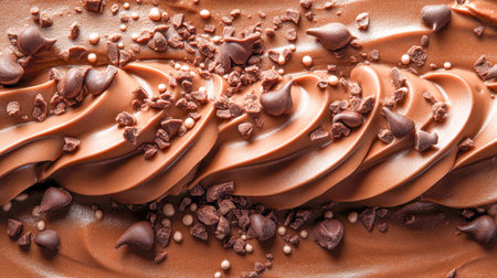 A close-up view of rich and smooth chocolate cream spread offers a stunning visual with textured swirls that enhance culinary creativity for dessert preparation.