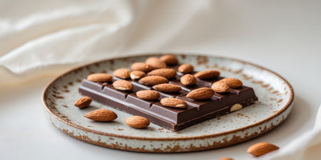 AI Generated. Delicious Dark Chocolate Bar with Almonds on Rustic Plate