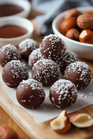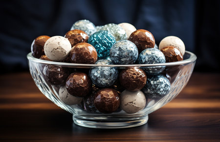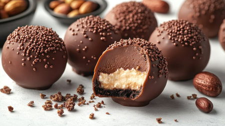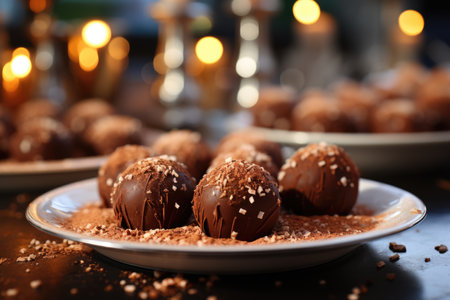 Making homemade chocolate truffle candy, festive desserts for a party, food photography, generative AI illustration