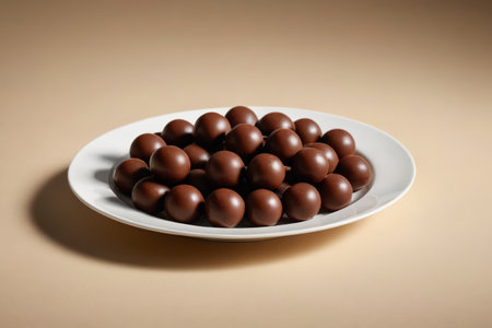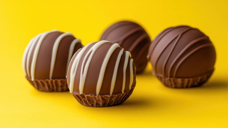 Creamy milk chocolate truffles, elegantly placed on yellow for high contrast and appeal