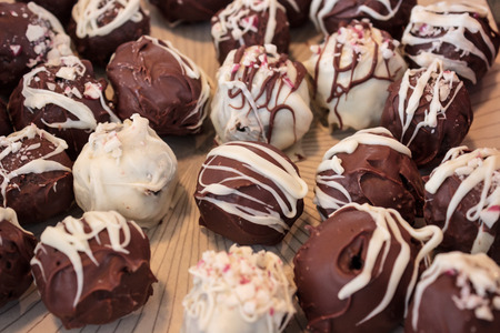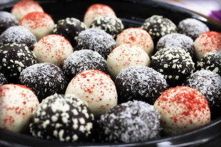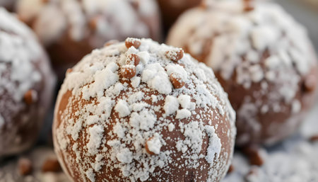 Decadent dessert balls dusted with cocoa powder create a mouthwatering display.