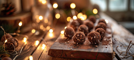 Warm Brown Christmas Truffles Display with Glowing Lights