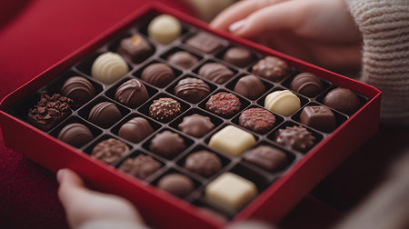 Close-up photography of box of handcrafted chocolate, luxury dessert. AI generative