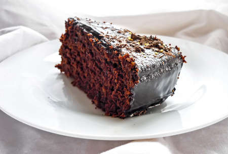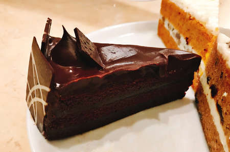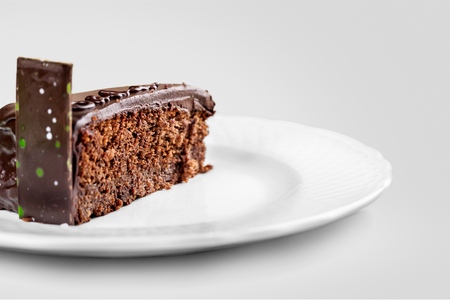chocolate cake on plate with cake on background