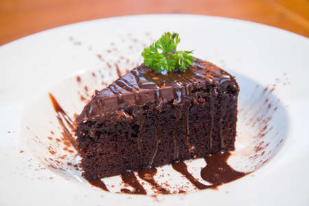 Delicious chocolate cakes on white dish. Delicious dessert