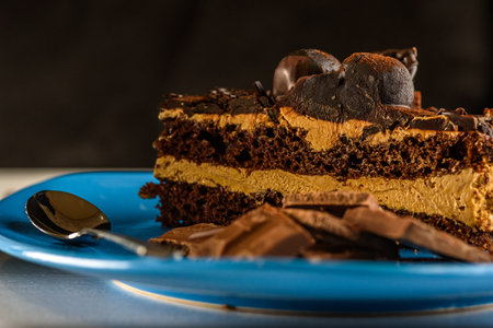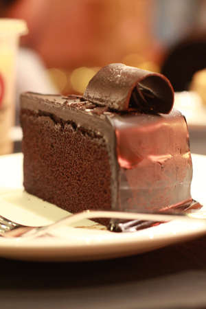 Chocolate cake with soft and blur background.