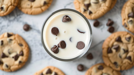 Floating chocolate chip cookies create a whimsical culinary atmosphere in a bright setting