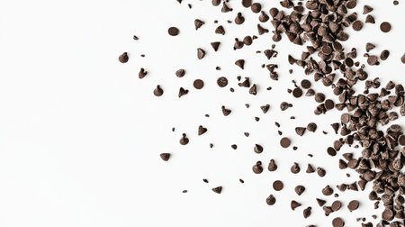 Close-up full frame shot of fresh chocolate chips on white background. unaltered, sweet food and unhealthy eating concept.