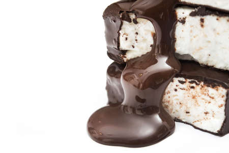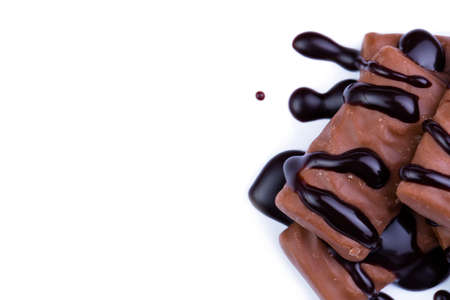 Chocolate stream, melted, souffle candy isolated on a white background.