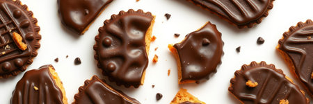 Delicious chocolate-covered cookies arranged on a white surface with bites taken out of some, showcasing a tempting dessert spread