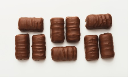 Milk chocolate candies isolated on white background, sweet food and tasty dessert