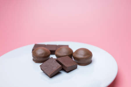 Dark chocolate candies isolated on white background, sweet food and tasty dessert