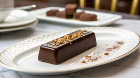 Elegant Assortment of Gourmet Chocolates on a Floral Plate Concept of Indulgent Sweets, Luxurious Desserts, Culinary Aesthetics, and Chocolate Appreciation. Valentine's Day. Copy space.