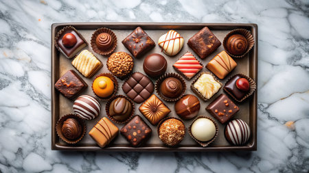AI Generated. a marble table with a selection of chocolates luxury