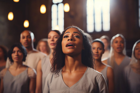 passionate performance by a diverse choir group, celebrating unity through gospel music