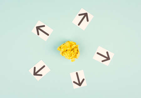 Individuality, brainstorming for new ideas, solving a problem, strategy for a target, working together, arrow pointing to a goal