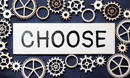Motivational and inspirational wording. CHOICE written on wooden blocks.
