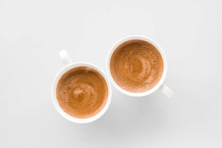 Drinks menu, italian espresso recipe and organic shop concept - Cup of hot french coffee as breakfast drink, flatlay cups on white background