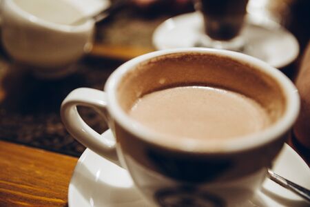 cup of cacao close up in cafe