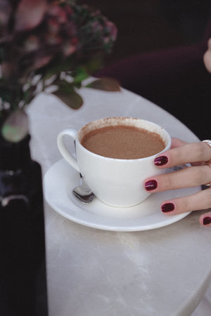 Hot chocolate cup in the morning, hot chocolate cup breakfast, breakfast of the day, hot drink