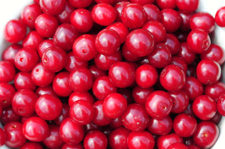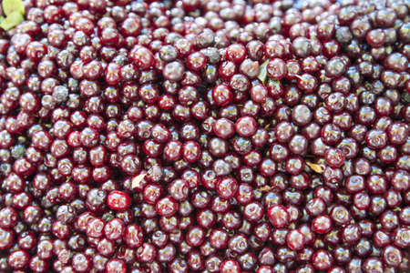 Ripe forest or garden cherry. Small red berries background. Harvesting.
