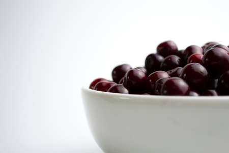 Macro shot of beautiful, red chokecherries found growing wild on the Canadian prairies. Used for wine & jelly.