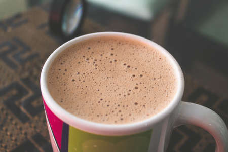 Hot chocolate cup in the morning, hot chocolate cup breakfast, breakfast of the day, hot drink
