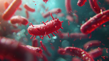 A highly detailed, colorful, and vivid image capturing bacteria at a microscopic level. The intricate details and radiant colors perfect for educational materials, medical presentations bacteriology.