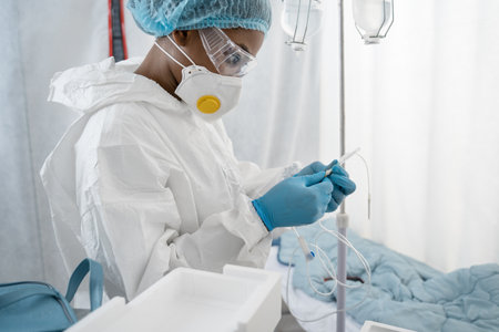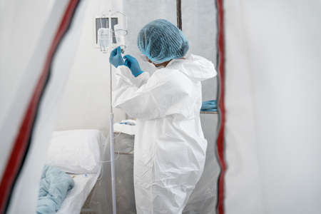 Doctor working for disease treatment with virus infected patient