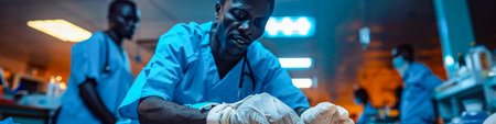 African Medical Professionals Engaged in a Surgical Procedure.