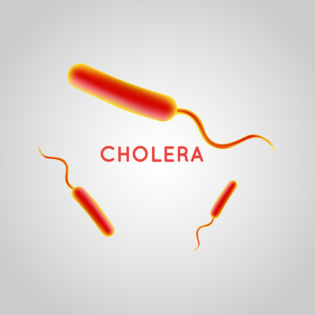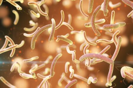 Vibrio cholerae bacteria, 3D illustration. Bacterium which causes cholera disease and is transmitted by contaminated water
