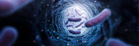 Vibrant 3D illustration showing the digestive process in the microscopic world