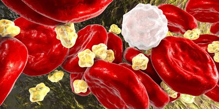 Healthy human red bloodcells and cholesterol plaques. 3d rendering