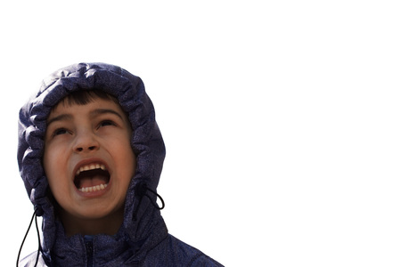 Angry Child Boy screams Isolated on White Background