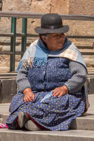 La Paz, Bolivia - september 30, 2018: woman in traditional clothes in the square San Francicsco in La Paz, in Bolivia