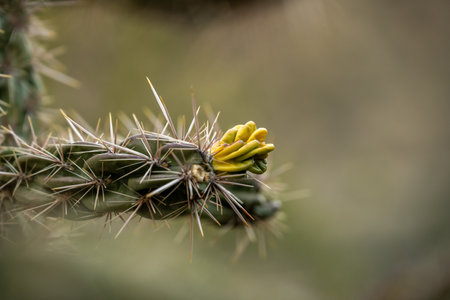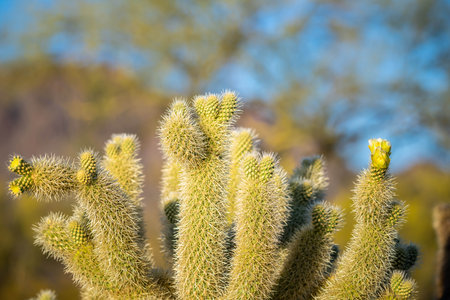 Close up macro of Cholla cactus Sonora desert mid summer