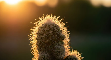 Close up of a cactus at sunset with a beautiful bokeh.