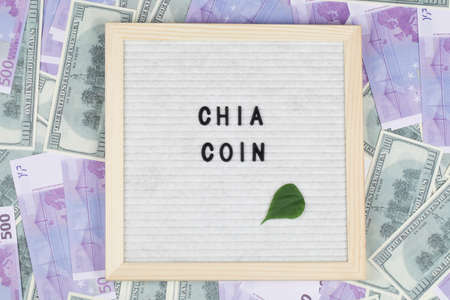 felt letter board with words chia coin with money. Chia cryptocurrency symbol