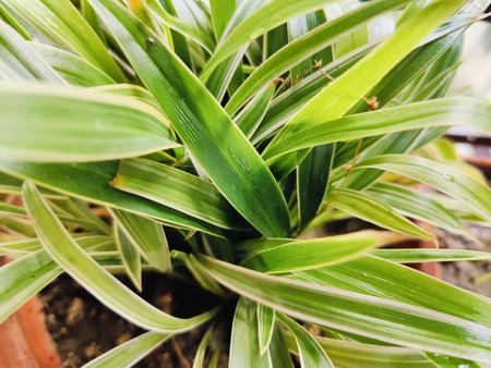 Elegant Spider Plant Houseplant with Variegated Leaves: Lush Green Foliage (Chlorophytum comosum) with White Stripes, Perfect for Eco-Friendly Botanical Concepts and Indoor Decor